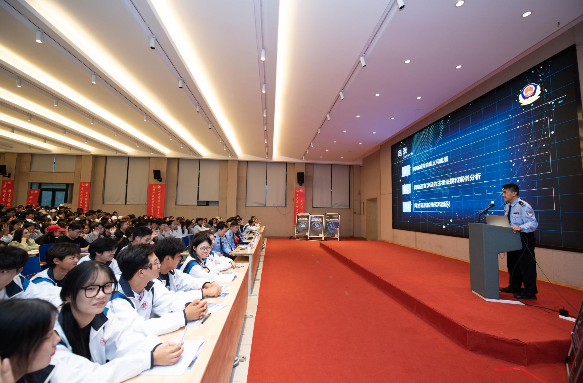 西安市公安局西咸新区公安局网安大队一级警长田嘉豪担任讲座主讲。田嘉豪首先剖析了当前网络谣言的传播特点和趋势,随后系统的向同学们讲解了什么是网络谣言、网络谣言的传播介质、网络谣言的现实危害,并普及有关网络安全的法律法规。为增强警示效果,他结合侦办的真实案例展开分析,以具体案例引导同学们深刻认识随意发表不当言论、传播谣言的严重后果,警醒大家自觉抵制谣言信息。最后,他为同学们分享了识别网络谣言的方法和技巧,强调了个人在维护网络空间清朗中的责任和作用,呼吁大家做到不信谣、不传谣、不造谣,主动学习相关法律知识,用法律武器保护自己的权益,共同营造和谐、清朗的网络环境。