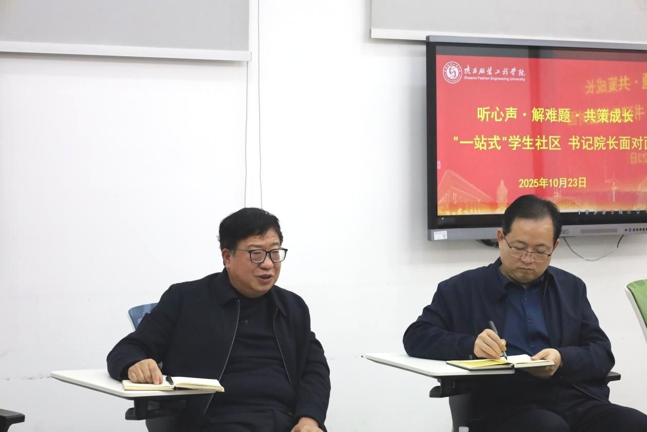陕服新闻网讯(董良超)10月23日下午,我校“一站式”学生社区服务中心气氛热烈、交流融洽,首期“听心声·解难题·共策成长”书记院长面对面活动在此顺利举行。校党委书记王岗、党委副书记刘继兵出席,学校党政办、党委工作部、学生工作部、教务处、校团委等部门负责人以及学院党委书记代表、辅导员代表参加,与来自不同专业的30余名学生代表围坐交流,精准对接学生成长需求,共商学校发展大计。座谈会由学工部副部长董良超主持。