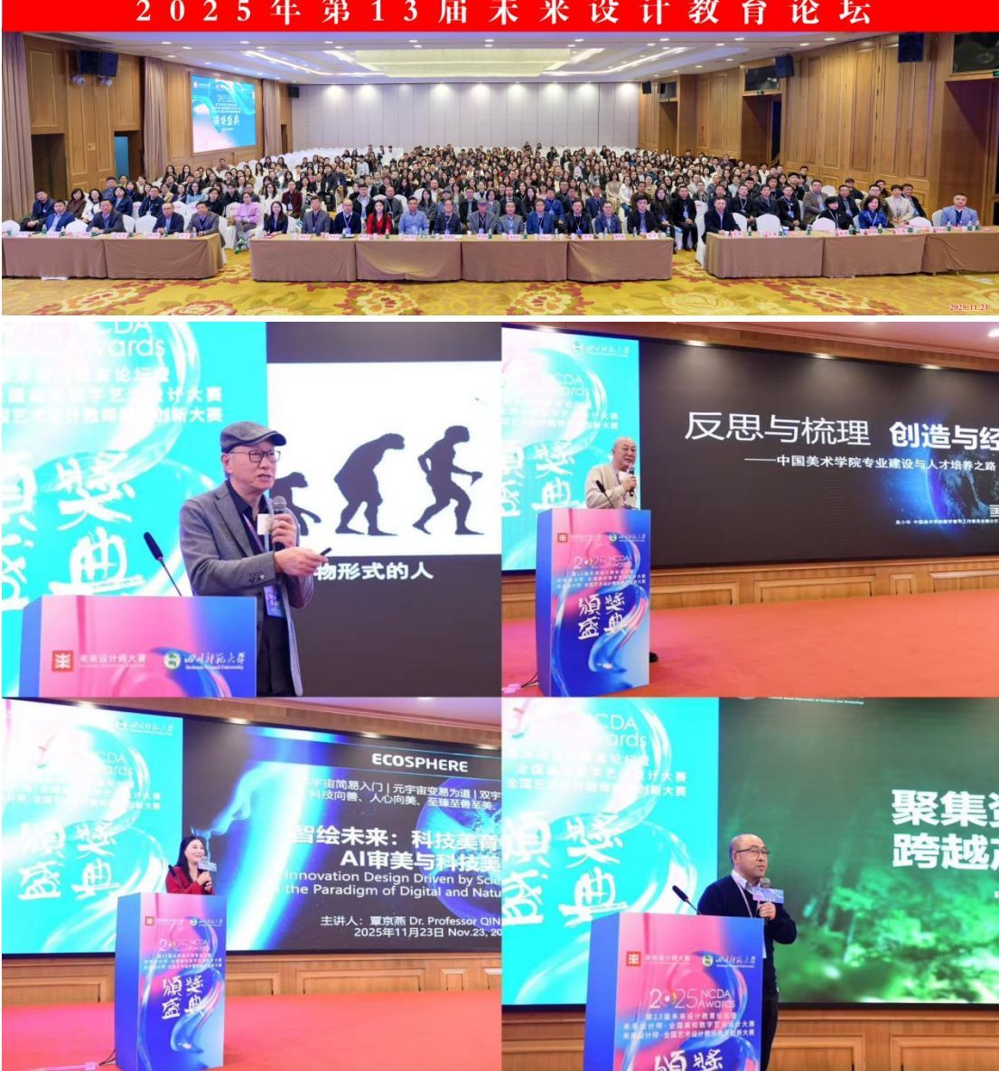同期,还举行了第十三届未来设计教育论坛。艺术设计学院师生聆听了中国美术学院吴小华教授、范凯熹教授,同济大学范圣玺教授、王建民教授,北京科技大学覃京燕教授及江西财经大学、四川师范大学、中南林业科技大学等高校专家的高质量讲座,吸收了国内顶流院校的学科专业建设经验和人才培养经验。