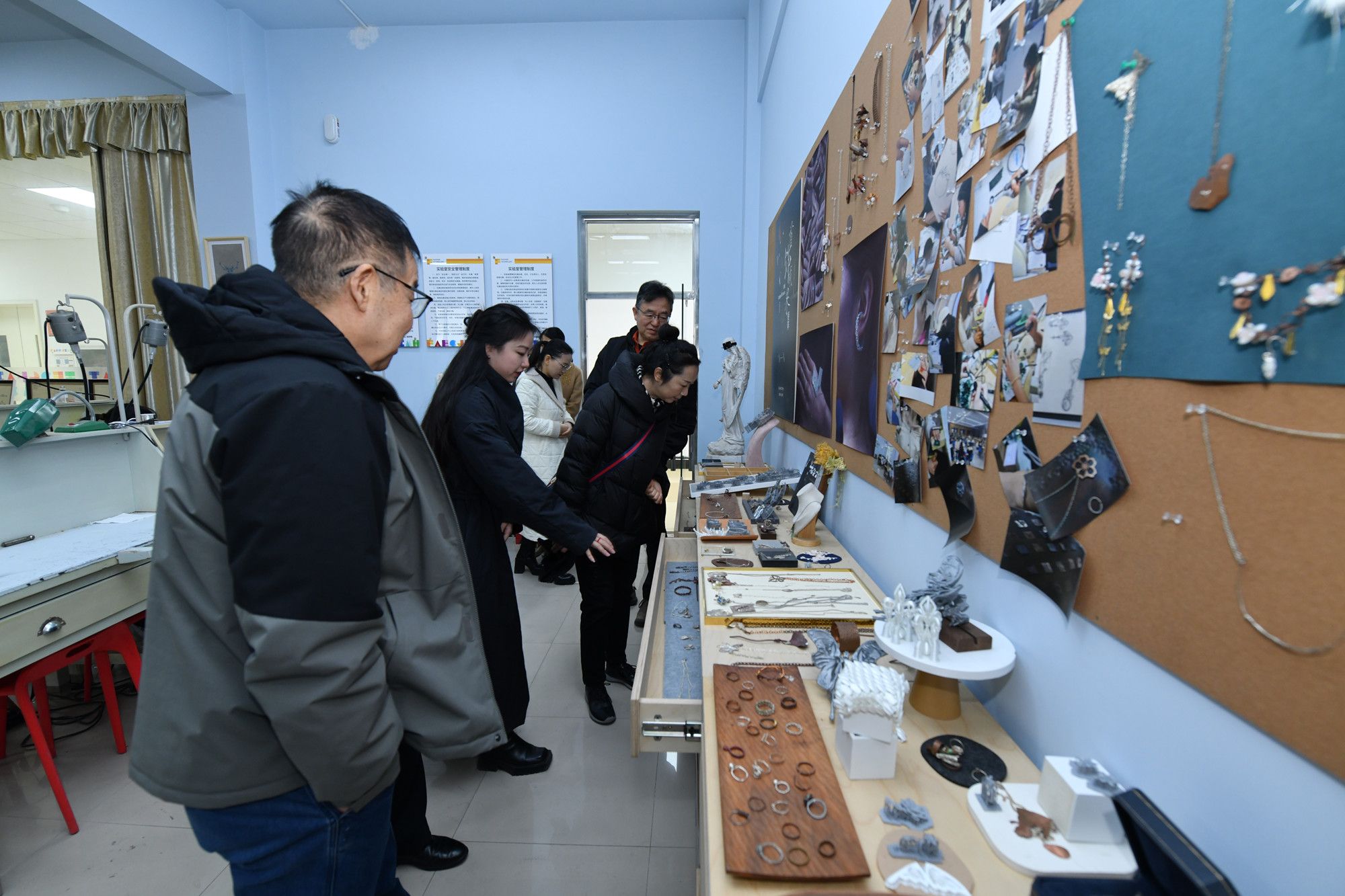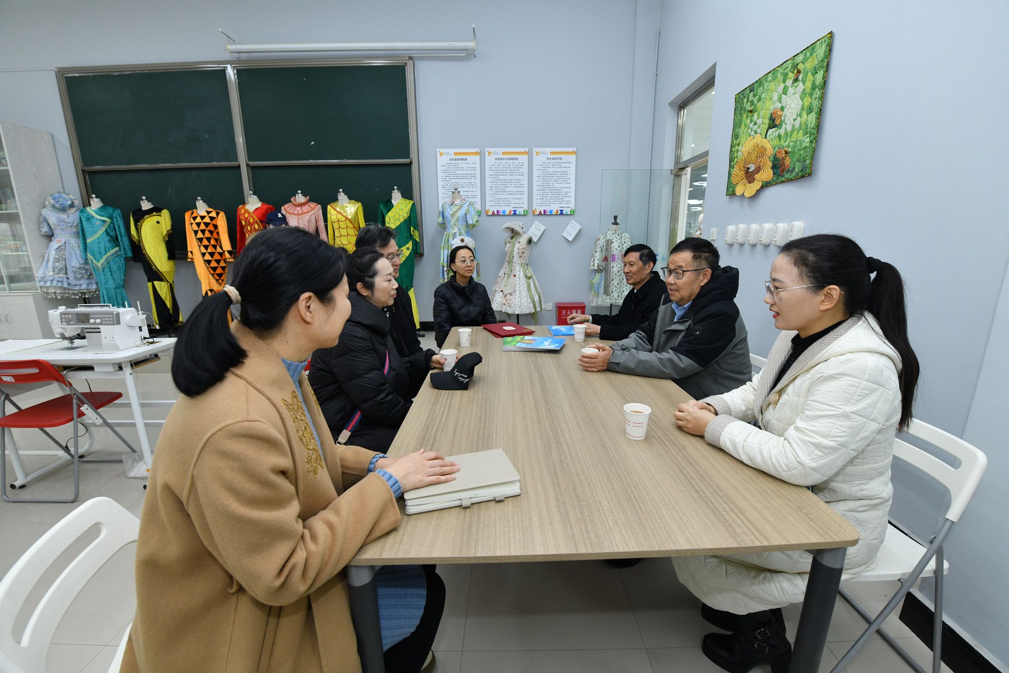 在校期间,薛凡女士参观了服装学院专业实验室与赵丽娜拼布服装创新工作室。我校讲解员详细介绍了实验室教学科研配套设施,同时围绕捐赠服装的创作背景、艺术特色及收藏展示意义展开讲解,让顾凡女士深入了解作品后续应用与传承规划。