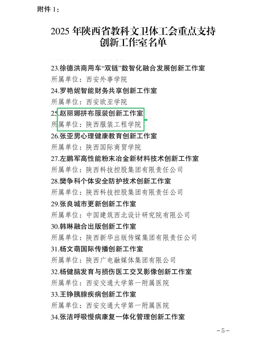 陕服新闻网讯(李文斌)近日,陕西省教科文卫体工会委员会发布《关于发挥好2025年陕西省教科文卫体工会重点支持创新工作室作用的通知》,我校服装学院“赵丽娜拼布服装创新工作室”在重点支持之列。这不仅是对工作室团队深耕传统工艺与现代设计融合的肯定,也是我校在非遗传承、创新型人才培养与产学研结合方面取得的又一重要成果。