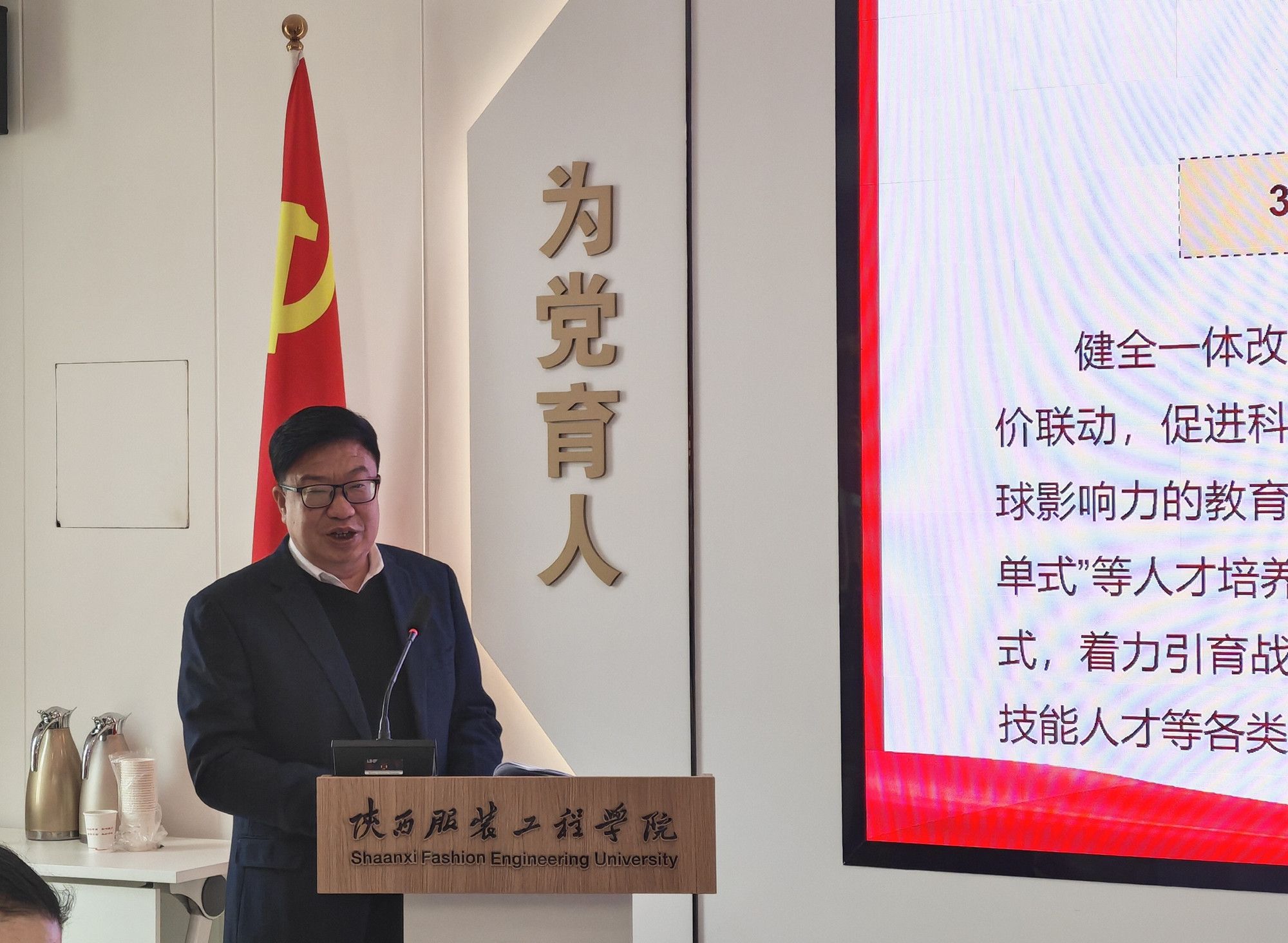 陕服新闻网讯(李文斌)为推进学校学习宣传贯彻党的二十届四中全会精神走深走实,12月25日上午,党委书记王岗在行政中心326会议室,以《深刻认识准确把握党的二十届四中全会精神,奋力谱写陕服高质量发展新篇章》为题讲专题党课。校领导、党委委员、纪委委员、二级学院党委(党总支)书记、机关党总支(直属党支部)书记、师生党员代表参加会议。党委委员、校长助理罗文谦主持会议。