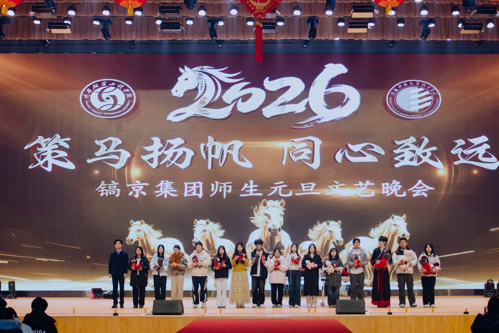 在新的一年里,镐京人将继续携手同行、同心致远,在育人兴校的道路上勇毅前行。以此次晚会为新的起点,把师生们在舞台上展现出的那份热爱、执着、团结与奋进,融入到日常的教学、科研与学习中,以“策马建功”的豪情壮志,策马扬鞭,在服务社会、建设祖国的征程中建功立业,共同谱写辉煌壮丽的时代华章。