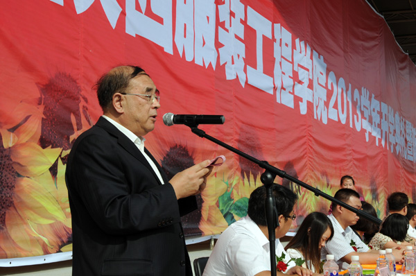 上午九时整,张进平书记宣布大会开始,雄壮的国歌响彻会场上空。吕明董事长首先发表了热情洋溢的讲话,他首先代表全校万名师生员工向出席典礼的领导、专家和来宾表示崇高的敬意和衷心的感谢!向来自祖国各地的新同学表示最热烈的欢迎和衷心的祝贺!他说:“陕西服装工程学院已走过了20年发展历程,值得骄傲的是学院于2011年经国家教育部批准,已经由一个高职院校升格为普通本科高校。经过全院所有专家教授、教职员工的共同努力,学院不仅拥有美丽的校园、现代化的教学设施,还拥有了极其宝贵的、价值不可估量的季羡林国学院、拥有世界裁缝大师、意大利国际服装设计师联合会会长蒂莲佐先生的工作室,和西安工程大学合作投巨资共建的陕西服装工程学院工程实验中心、陕西国学博物馆,更令大家羡慕的是我们拥有一大批各专业的专家、学者、教授、大师,群星灿烂的师资队伍和上万名莘莘学子共同撑起陕服这所特色大学的一片蓝天!”他殷切希望同学们树立正确的人生观、价值观,关心国家大事,爱科学、讲文明,守纪律、不怕困难,勤奋学习,积极思考,努力实践,全面提高自身素质,真正把自己锻炼成适应社会、具有竞争力的一代新人。王鹏飞院长在致辞中说,每年新同学的到来,都给学院带来勃勃生机,使我们感受到青春勃发的魅力、智慧传承的喜悦和知识创新的希望。他向大家一一介绍了在座的学校各位专家教授后说:“名木栖良禽,名师出高徒,我相信有这样一批高水平的、大师级的老师,经过师生共同努力,在座的每一位都会走向成功!”他勉励同学们要志存高远,富有理想、勤奋学习,脚踏实地、身心健康,和谐发展;要珍惜大学这段风华正茂的岁月,为自己今后的人生奠定坚实的基础,敢于有梦、勇于追梦、勤于圆梦,为实现中国梦增添强大青春能量!教师代表马菊侠教授、学生代表13级新生李泓飞分别发言,他们表示在新的学年要潜心执教,教书育人,为学生学习创造良好的学习环境;刻苦钻研,努力学习,立志成才,为陕服争光。