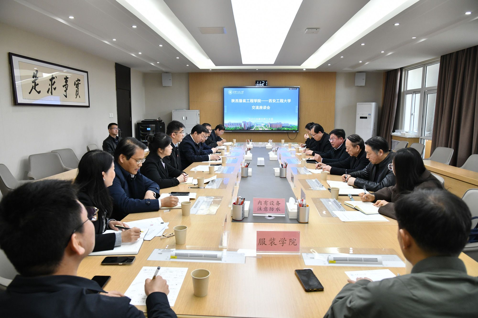 刘继兵对西安工程大学的热情接待以及长期以来给予我校的支持帮扶表示诚挚感谢。他介绍了我校党建基本情况及此次调研学习的主要目的,重点交流了我校围绕“一融双高”党建目标,在“强政治、筑根基、重强化、提实效”等方面的工作举措与成效。他表示,西安工程大学历史悠久、底蕴深厚、特色鲜明,党建工作经验值得我校深入学习借鉴,期待双方在“组织强基”“队伍赋能”“育人协同”“资源共享”“发展赋能”等方面进一步深化合作,并以党建为引领,将合作延伸至学科专业建设、师资培养、科研攻关等领域,特别是在服装、艺术设计、新媒体等学科交集领域,探索教师互聘、课程共享、实验室开放等深度合作方式,真正实现以共建促发展。