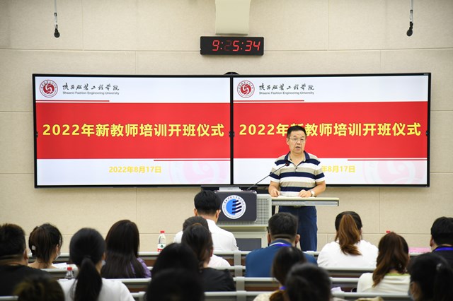 陕服新闻网讯(李文斌)为促进新教师尽快做好角色转换,提升专业素质和育人能力,更好胜任教育教学工作,8月17日上午,我校举办2022年新教师培训开班仪式,董事会成员、学校党政领导、董事长助理、各二级学院、各部门负责人和全体新教师参加仪式。董事长吕明博士出席并发表讲话,常务副校长黄新民教授主持。