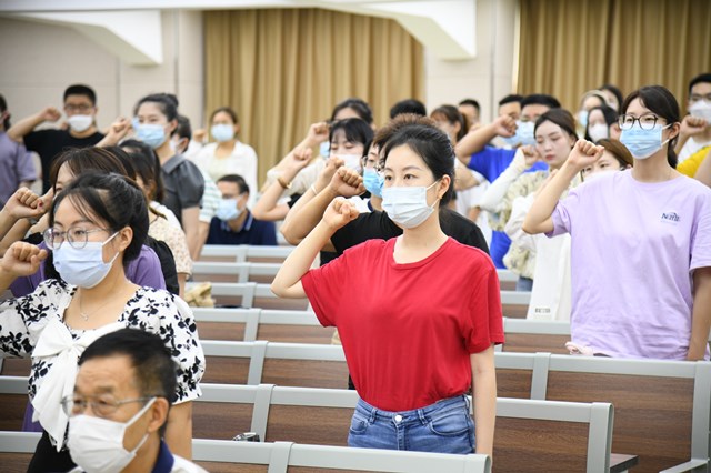 新教师徐晓楠代表全体新教师作了表态发言。新教师们进行了入职宣誓,表达了自己笃定教育事业、为祖国培养德智体美劳全面发展的社会主义建设者和接班人的坚定信心。