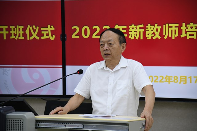 校长姜寿山教授致辞,并以怎样才能成为一个合格的大学老师为中心,对广大新教师提出了几点希望。