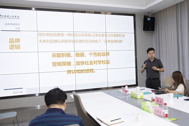 副校长吴俊林致欢迎辞,对西北政法大学考察团表示欢迎,并介绍我校基本情况和建校28年来的建设成就。西北政法大学党委副书记、纪委书记肖道远介绍了西北政法大学的基本情况,盛赞吕明董事长的教育情怀和广阔胸怀,对我校建设成就高度称赞,对我校季羡林国学院在国学思想传播、教育教学方面的独特作用充分肯定,对两校互相学习、优势互补,进一步深入合作充满信心。西北政法大学艺术学院院长助理赵哲超介绍了为我校制定的品牌传播策划方案,新闻传播学院院长孙江对方案作了补充说明。