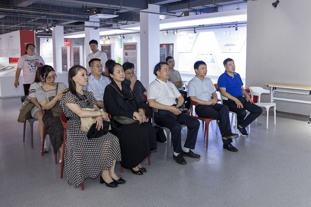 陕服新闻网讯(李文斌)6月13日下午,西北政法大学党委副书记、纪委书记肖道远、西北政法大学新闻传播学院院长孙江一行11人莅临我校考察交流。校领导陪同肖道远一行观看了学校《镐京》宣传片,参观考察了季羡林国学院、数字艺术中心、艺术学院实验室、图书馆、体育馆、现代服装产业学院等处,并在国学院一楼会议室进行了深入交流座谈。董事长吕明、副董事长吕超、副校长李宗领、服装学院院长张莉、宣传部负责人伍建成、新媒体中心负责人芮小博参加座谈会。副校长吴俊林主持座谈会。