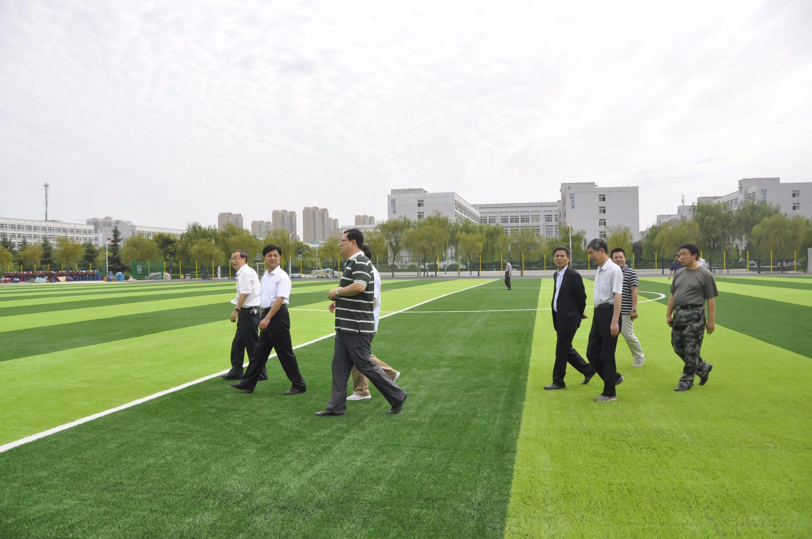 院领导视察正在施工的学校田径场